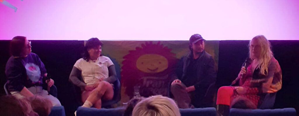It was very special to see A Story of Unfolding Wings on the big screen during Transcreen on Tour. I was nervous beforehand, afraid that the rapidly changing patterns would be too busy on such a large surface in a pitch-dark room. But it was beautiful, and I received wonderful applause and much appreciation during the Q&A, where I sat wrapped in the fabric I wove for Boymask. On 13 December, I will have another chance, this time in room 1. And again with a Q&A. It would be great if you could join us. The programme is called ROOTS Ultra Short 1 and starts at 4 p.m.